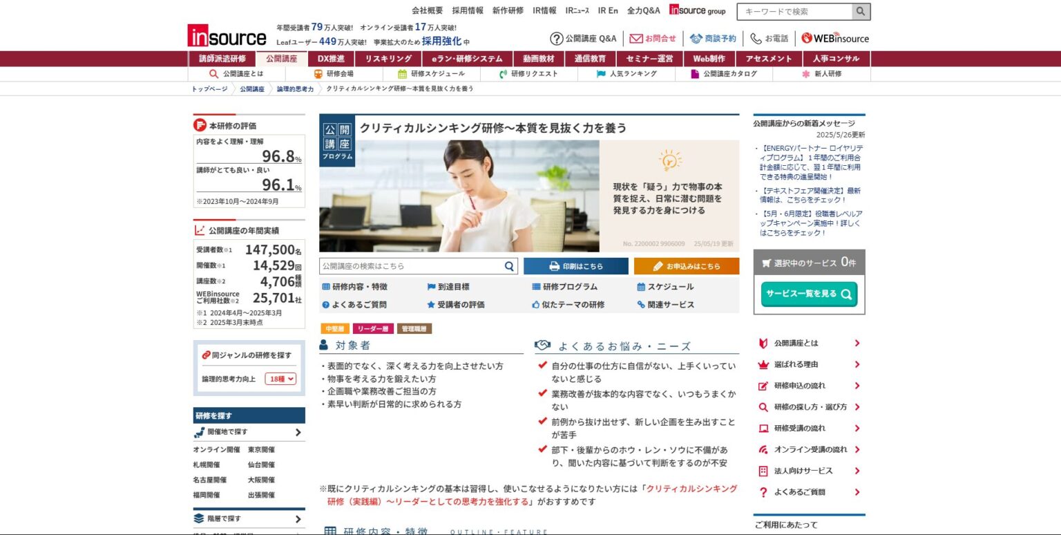 | 株式会社インソース | クリティカルシンキング研修 | 東京都千代田区神田小川町3-20 第2龍名館ビル | 詳細 |