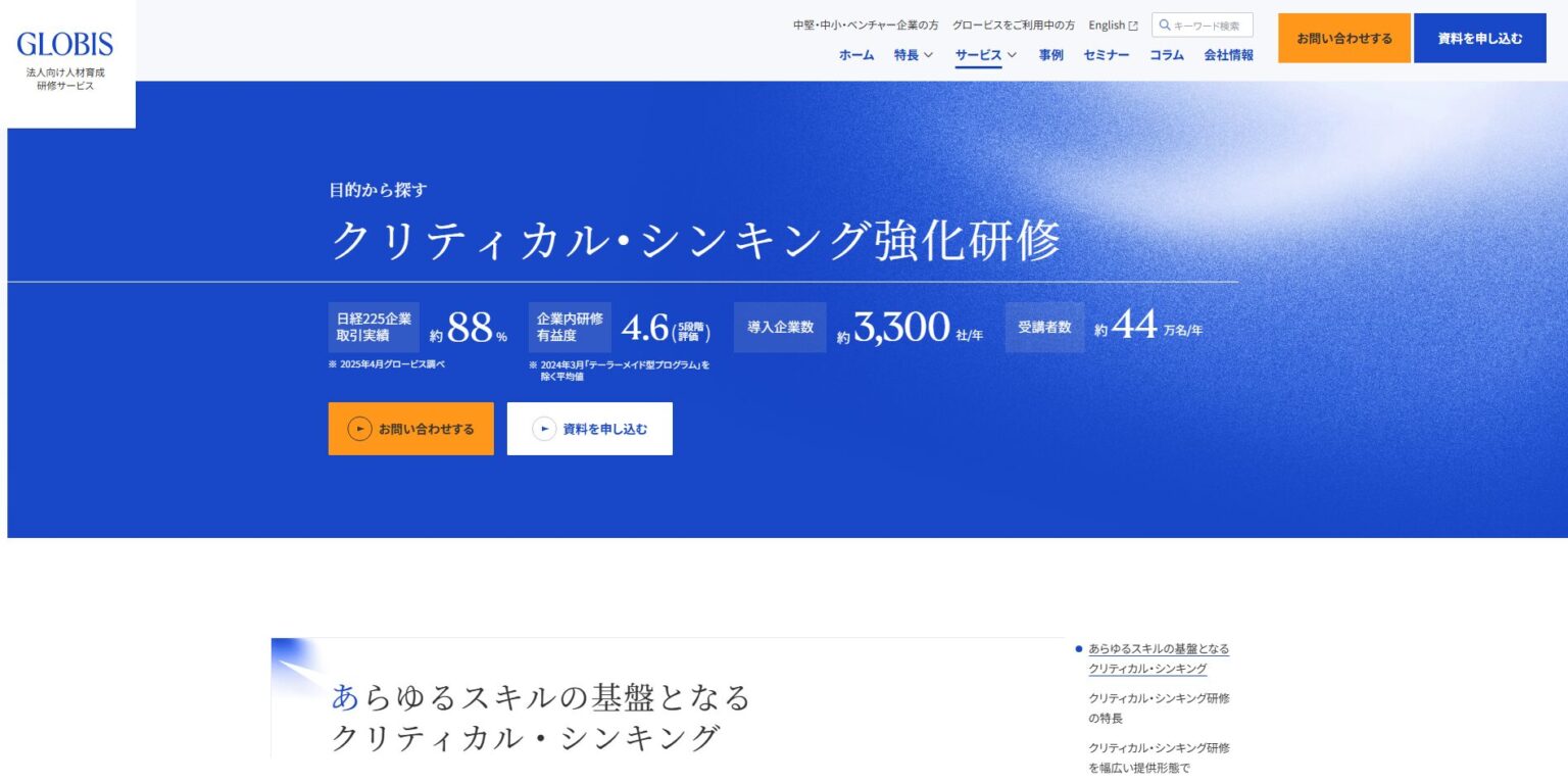 クリティカルシンキング以外のおすすめの研修会社は、こちらで紹介しています。