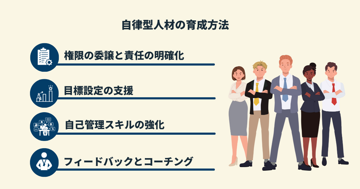 自律型人材を育成するための4つの重要な手法は以下の通りです。
