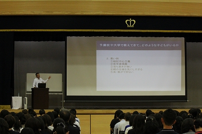 30年以上にわたる教育経験から実質的で具体的な話をしています。出席者の皆さんが分かりやすく話を聴けるように、明解なレジュメを必ず準備し会場で配布し、パワーポイントを使用した講演会が基本です。