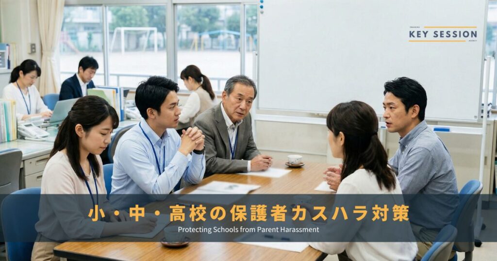 専門学校・大学における保護者カスハラ対策については、成年学生特有の課題(個人情報の壁・学費返還トラブルなど)を解説した専門学校・大学の保護者カスハラ対策もあわせてご覧ください。
