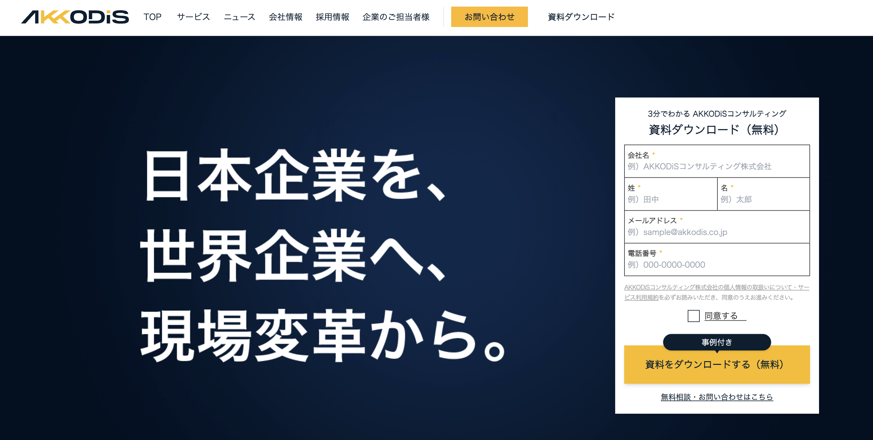 | AKKODiSコンサルティング株式会社の強み | 現場変革力とデジタル技術を活用し、日本企業を世界水準へ導く専門知見とグローバルネットワークが強み。 |