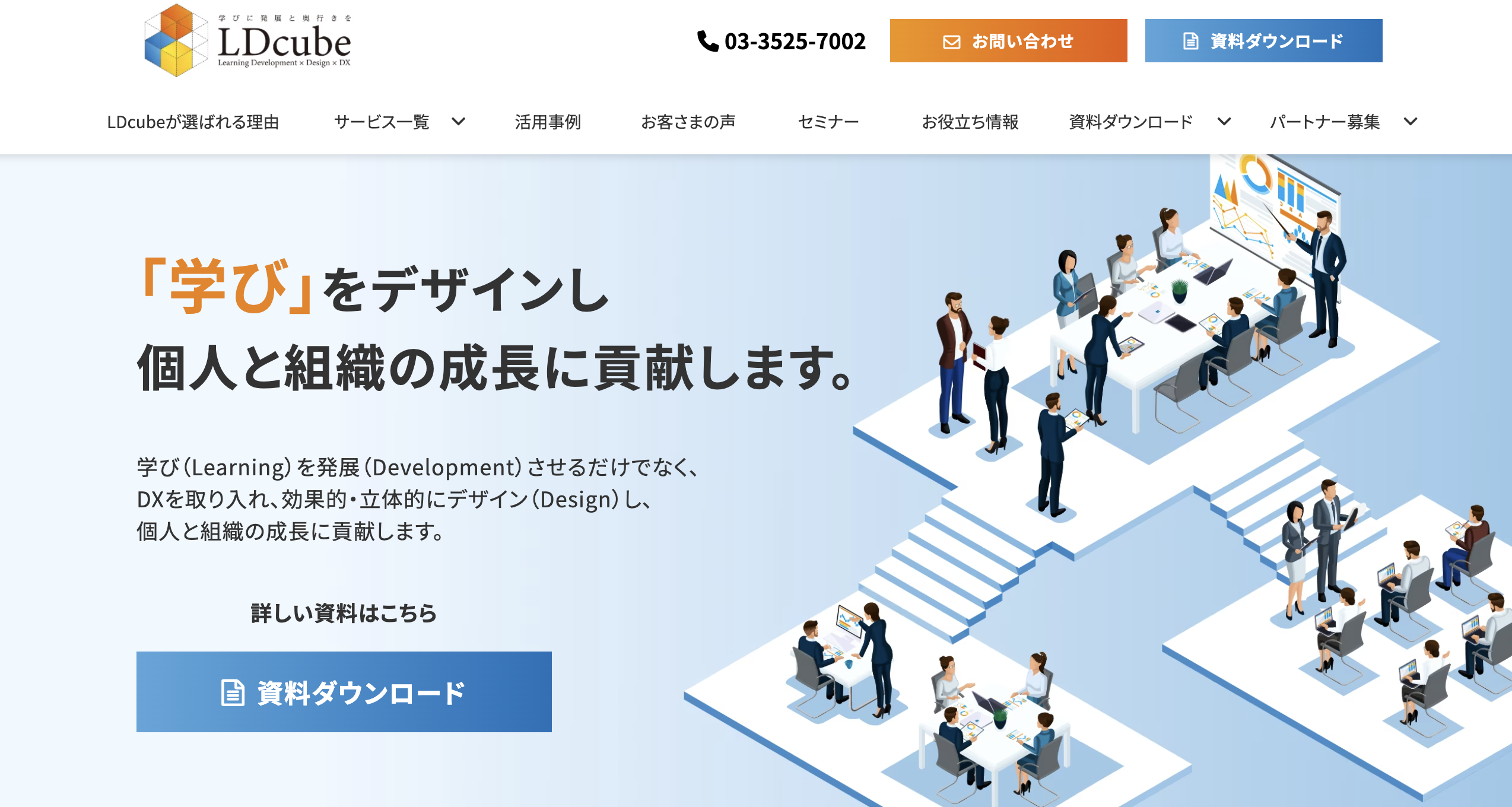 | 株式会社LDcubeの強み | 集合研修とデジタルツールを融合して、変化に適応した立体的な学びを設計・提供 |