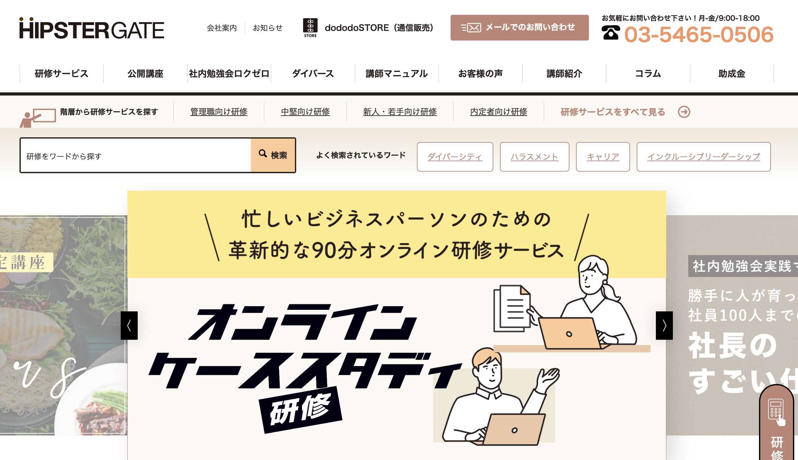 | 研修カテゴリー | 新入社員研修ビジネスマナー研修メンタルヘルス研修ハラスメント研修ダイバーシティ研修病院・医療機関向け研修中堅社員向け研修福祉・介護施設向け研修 |