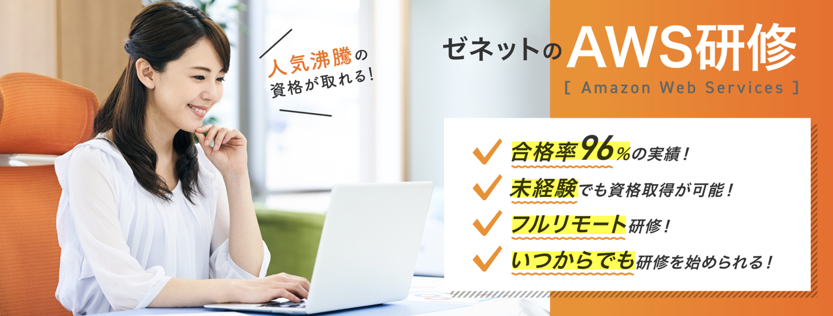 ゼネットのAWS研修は、基礎から応用までカバーし、ハンズオンで実践的な知識を身に付けられるのが特長です。AWS認定ソリューションアーキテクトアソシエイト資格対策や実践的ハンズオンを通じて、初心者でも約1か月で資格取得レベルの知識を習得可能です。