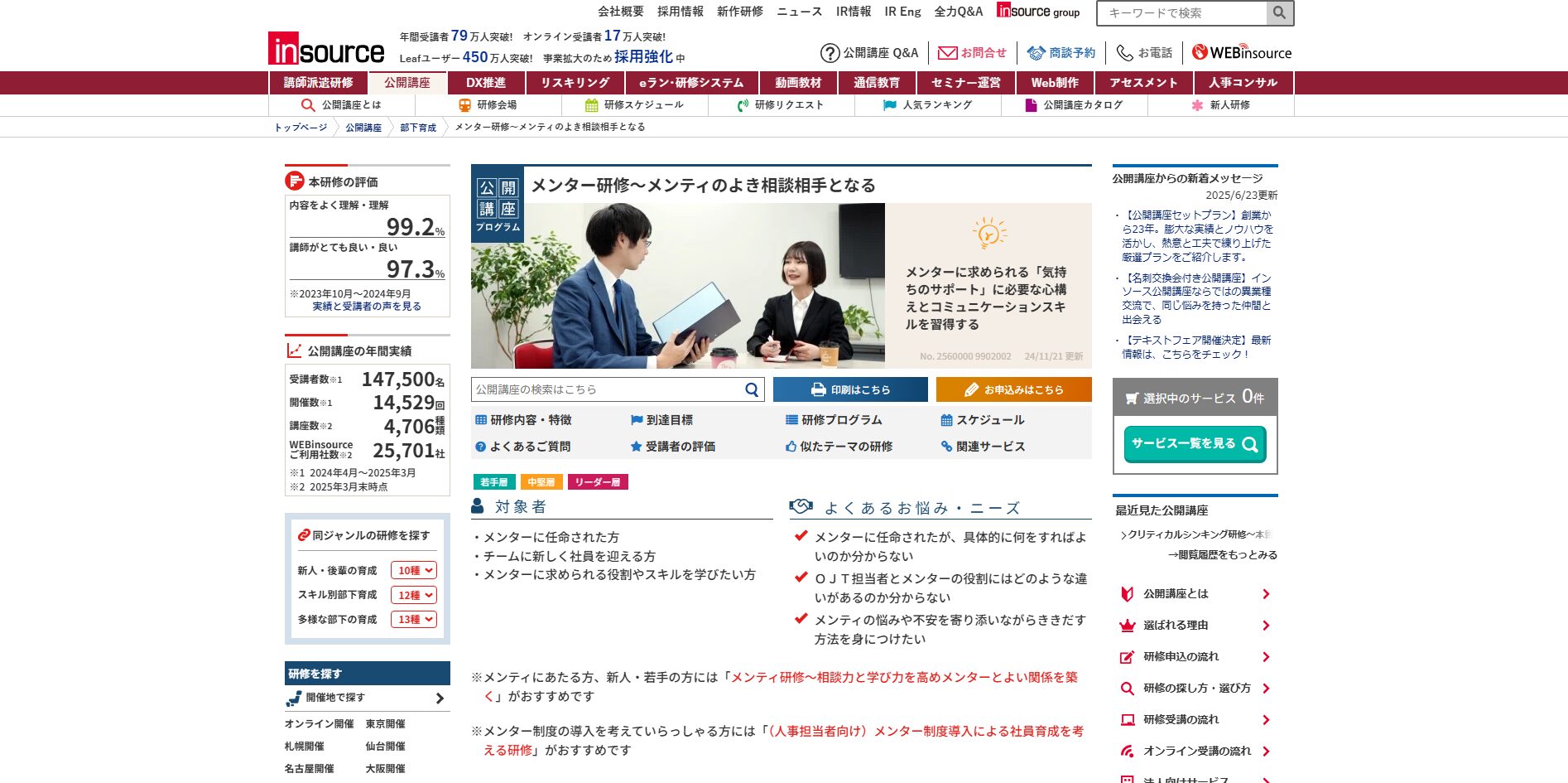| 研修カテゴリー | 新入社員研修内定者研修新人フォローアップ研修ロジカルシンキング研修メンタルヘルス研修部下育成研修メンター研修報連相研修 |
