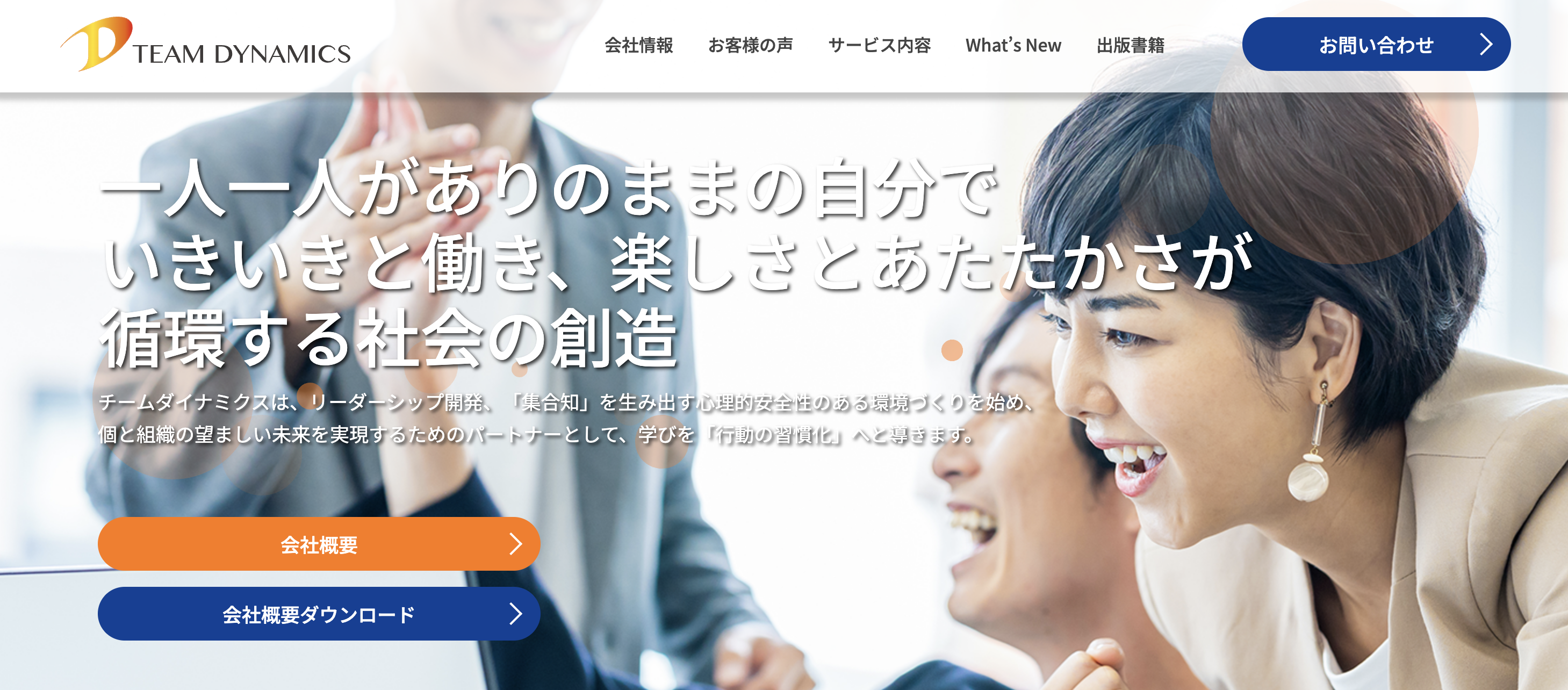 | 株式会社チームダイナミクス | 一人一人がありのままの自分でいきいきと働き、 楽しさとあたたかさが循環する社会の創造 | 東京都港区南青山5-17-2 5F | 詳細 |