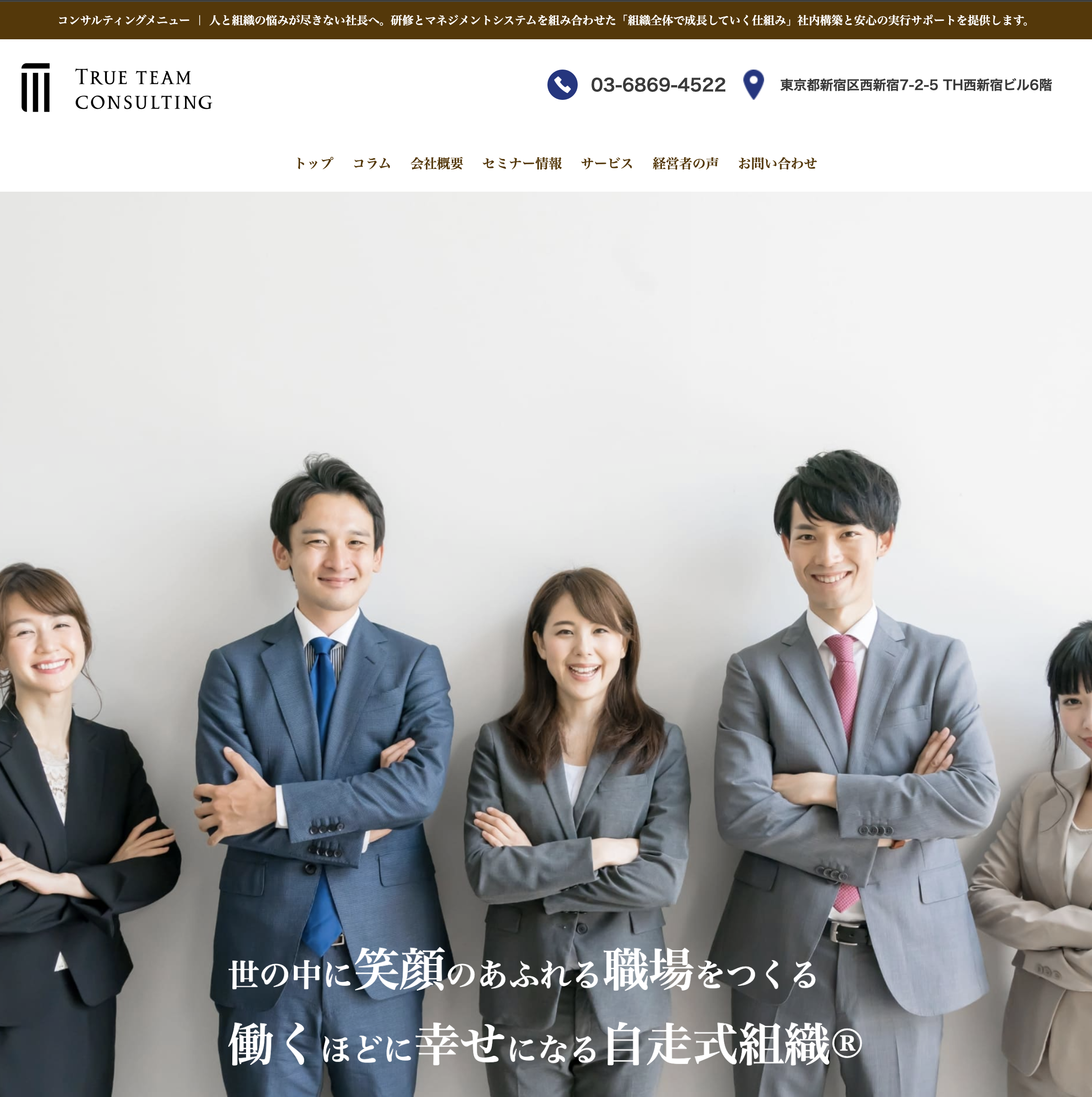 | 株式会社トゥルーチームコンサルティング | 中小企業向けに人材育成と強い組織作りをサポートすることに特化。 | 東京都新宿区西新宿7-2-5 TH西新宿ビル6階 | 詳細 |