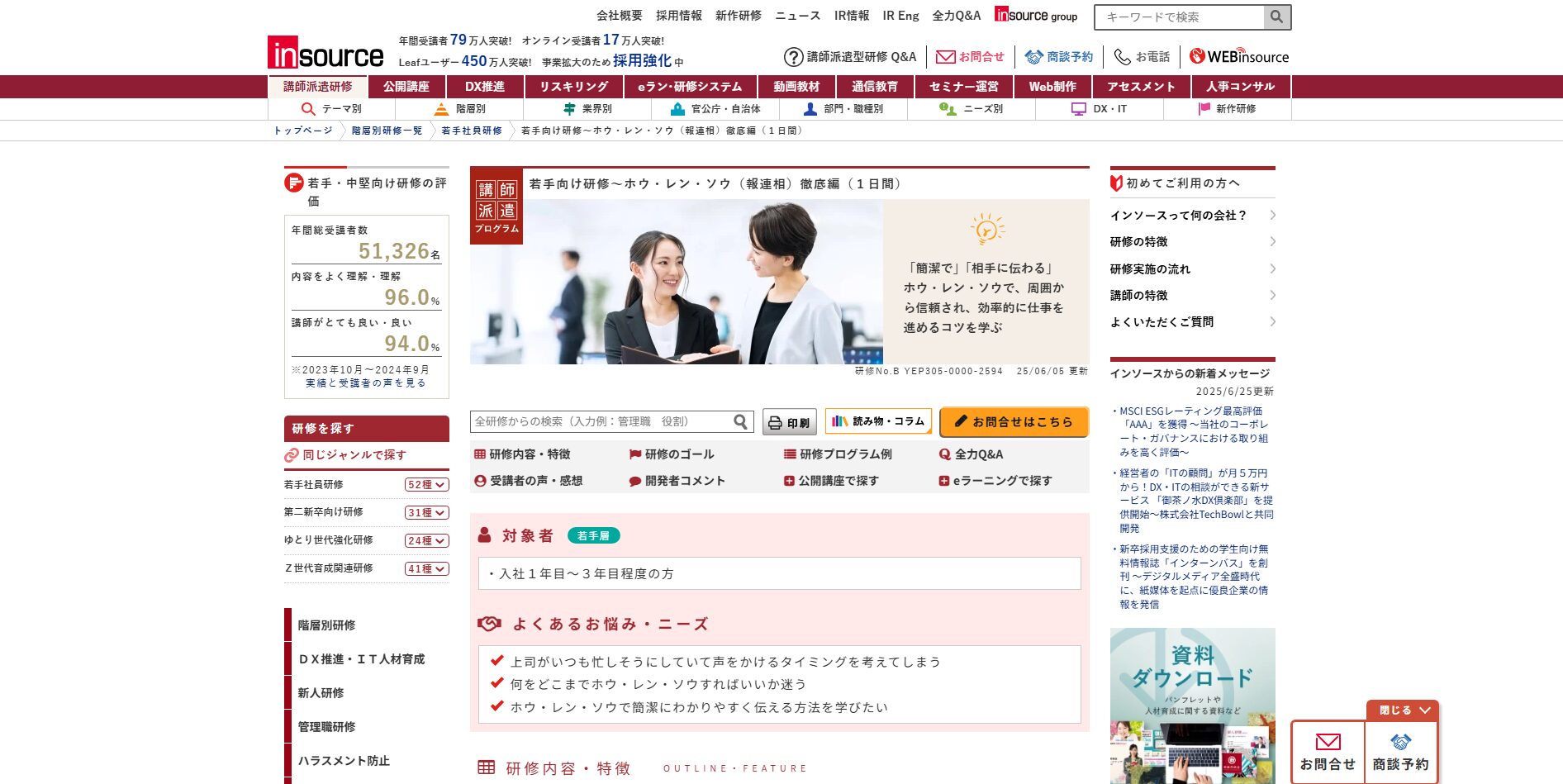 新人社員から中堅層まで幅広く効果が期待できる内容です。