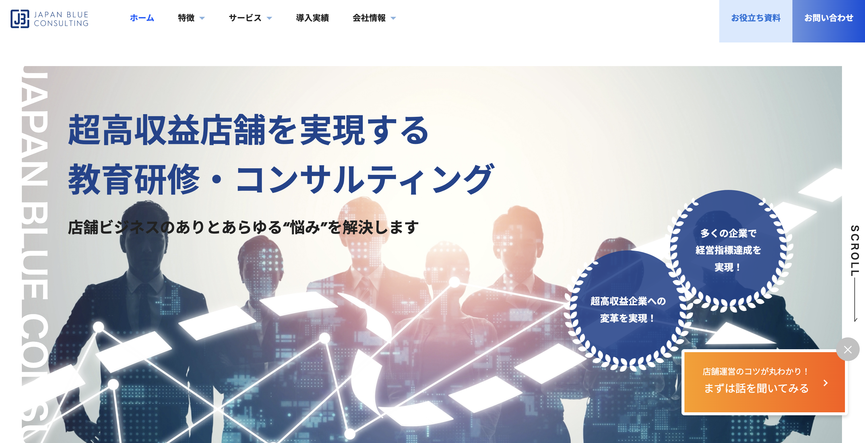 | ジャパンブルーコンサルティング株式会社の強み | 超高収益店舗を実現する 教育研修・コンサルティング |