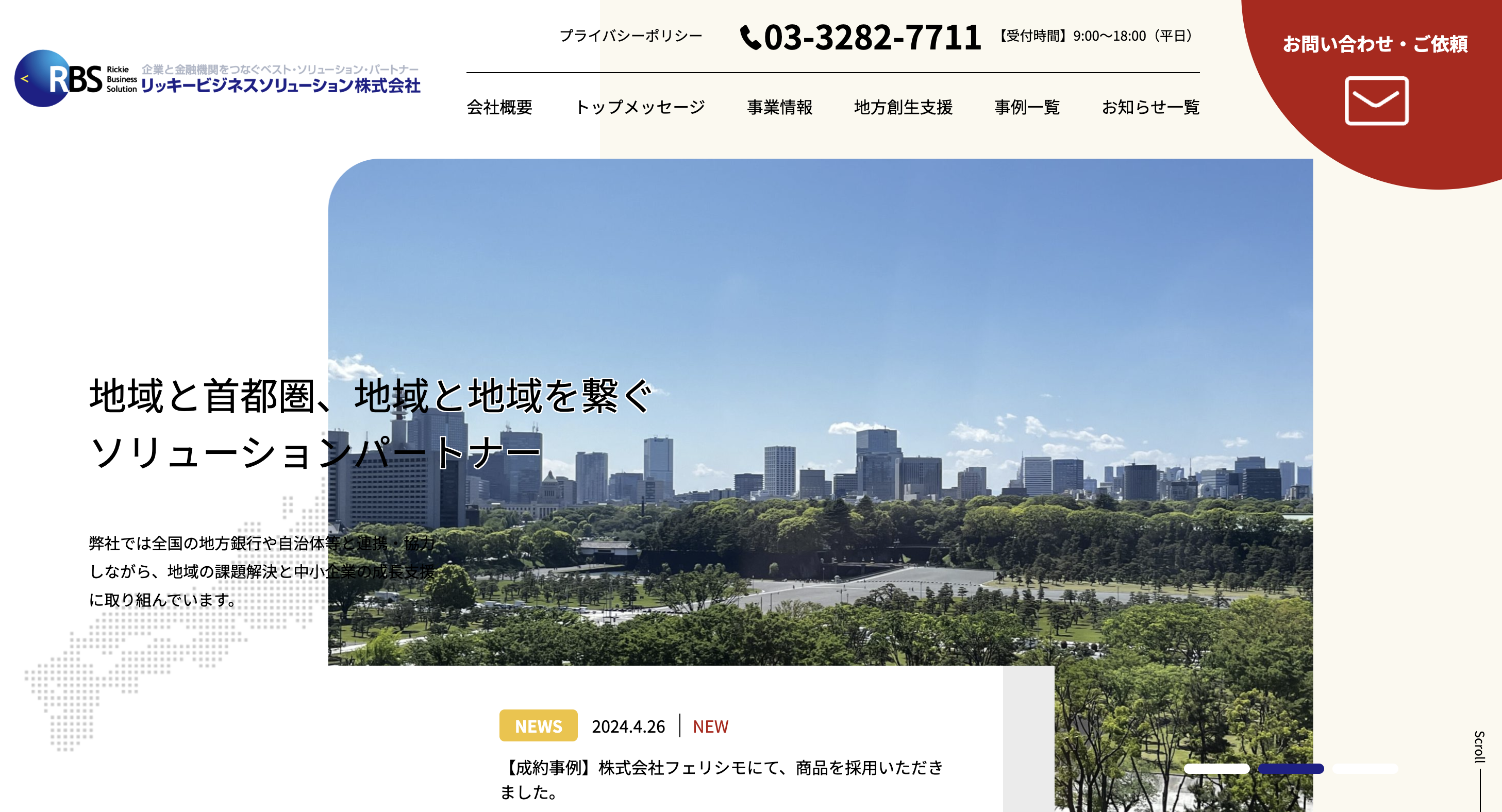 | リッキービジネスソリューション株式会社 | 地域金融機関との強固なネットワークと多様な経験を持つ。地域や中小企業の成長を支援するソリューションパートナーとして、地域経済の活性化に貢献。 | 東京都千代田区丸の内2-2-1 岸本ビル10F | 詳細 |