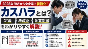 | パワーハラスメント | 職務上の地位や権限を利用した嫌がらせ | 暴言、過大な要求、人格否定 |