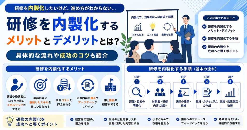 「研修を内製化したいけど、進め方がわからない」「研修を内製化する具体的なメリットは?」