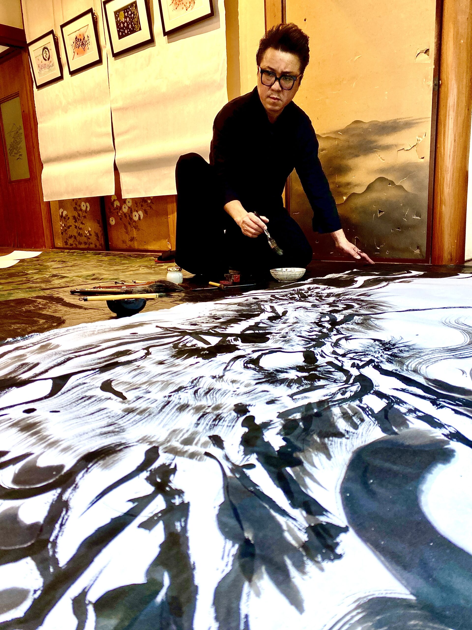 書画家として活動を始めた頃、ニューヨークの路上で書き下ろしや国内でも路上を中心にパフォーマンスをしていました。