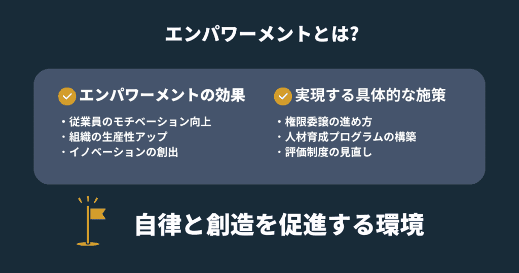 エンパワーメントの成功には、これらの課題を適切に認識し、計画的に対策を講じていくことが重要です。特に日本企業においては、従来の階層型組織からの転換を図りながら、自律的な組織への進化を目指すことが求められています。