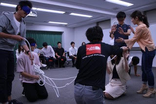 アイマスクをし、メンバーとワークをすることで、ストレス状況におけるチームワークとその一員として擬似体験する。知識よりも体感を伴う経験はインパクトがあるものである。